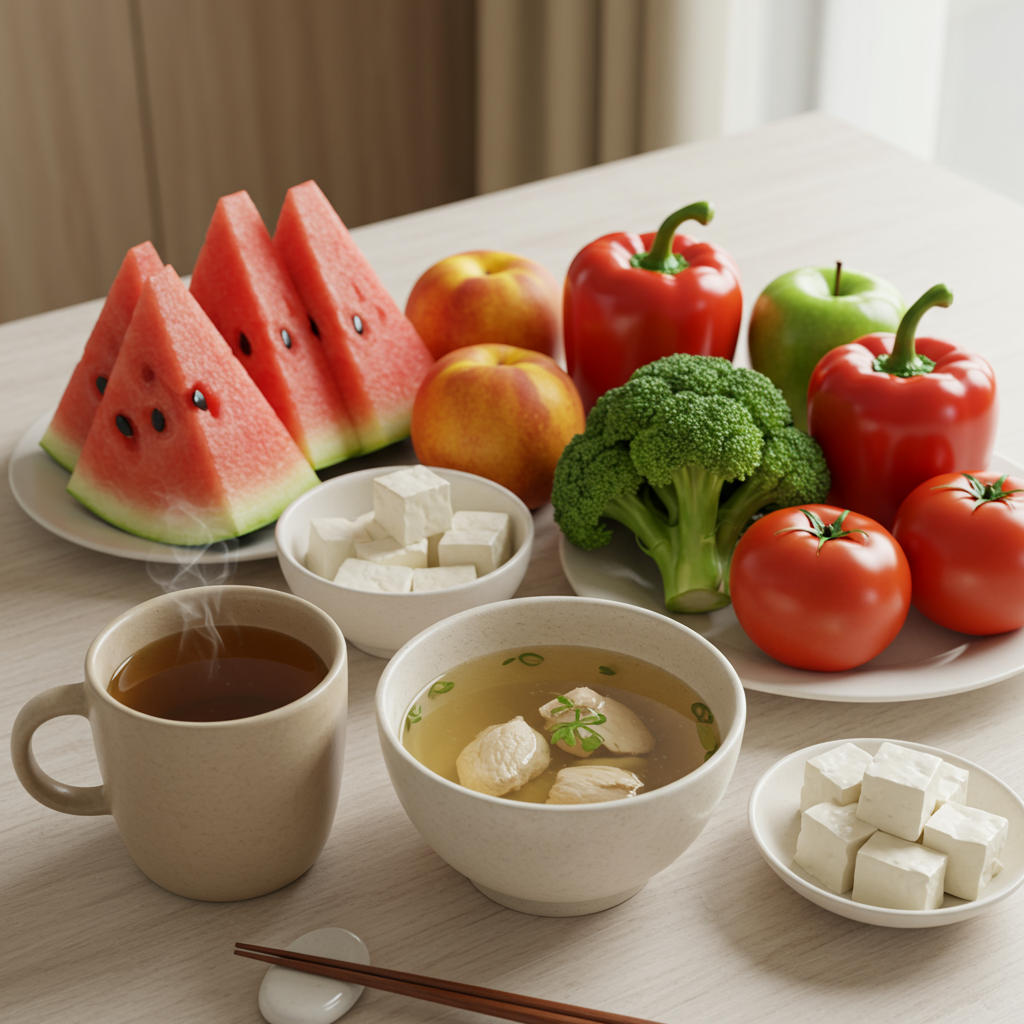 - 부드러운 단백질: 두부, 계란, 흰살 생선 등 소화 부담이 적은 단백질을 섭취하여 기력을 보충해주세요.