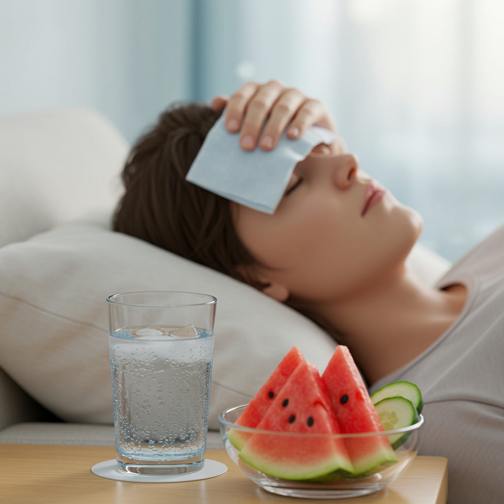 - 수분 섭취: 시원한 물이나 이온 음료를 조금씩 자주 마셔 탈수를 막고 체액 균형을 맞춰주세요.