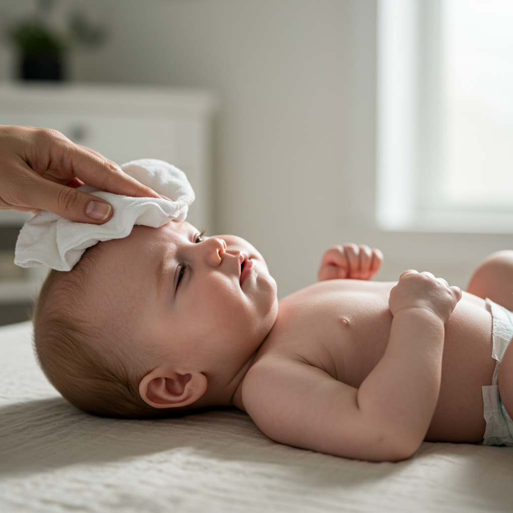 - 절대 얼음물이나 찬물로 갑자기 체온을 낮추려 하지 마세요! 아이에게 쇼크를 줄 수 있습니다.