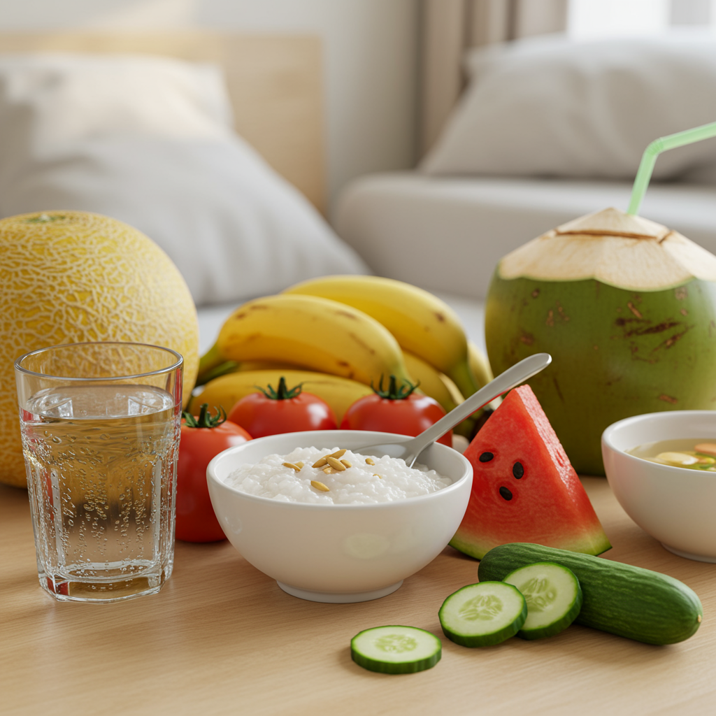 | 피해야 할 음식 | 맵고 짠 음식, 기름진 음식, 카페인 음료, 술 | 탈수를 악화시키거나 소화에 부담을 주어 회복을 더디게 할 수 있습니다. |