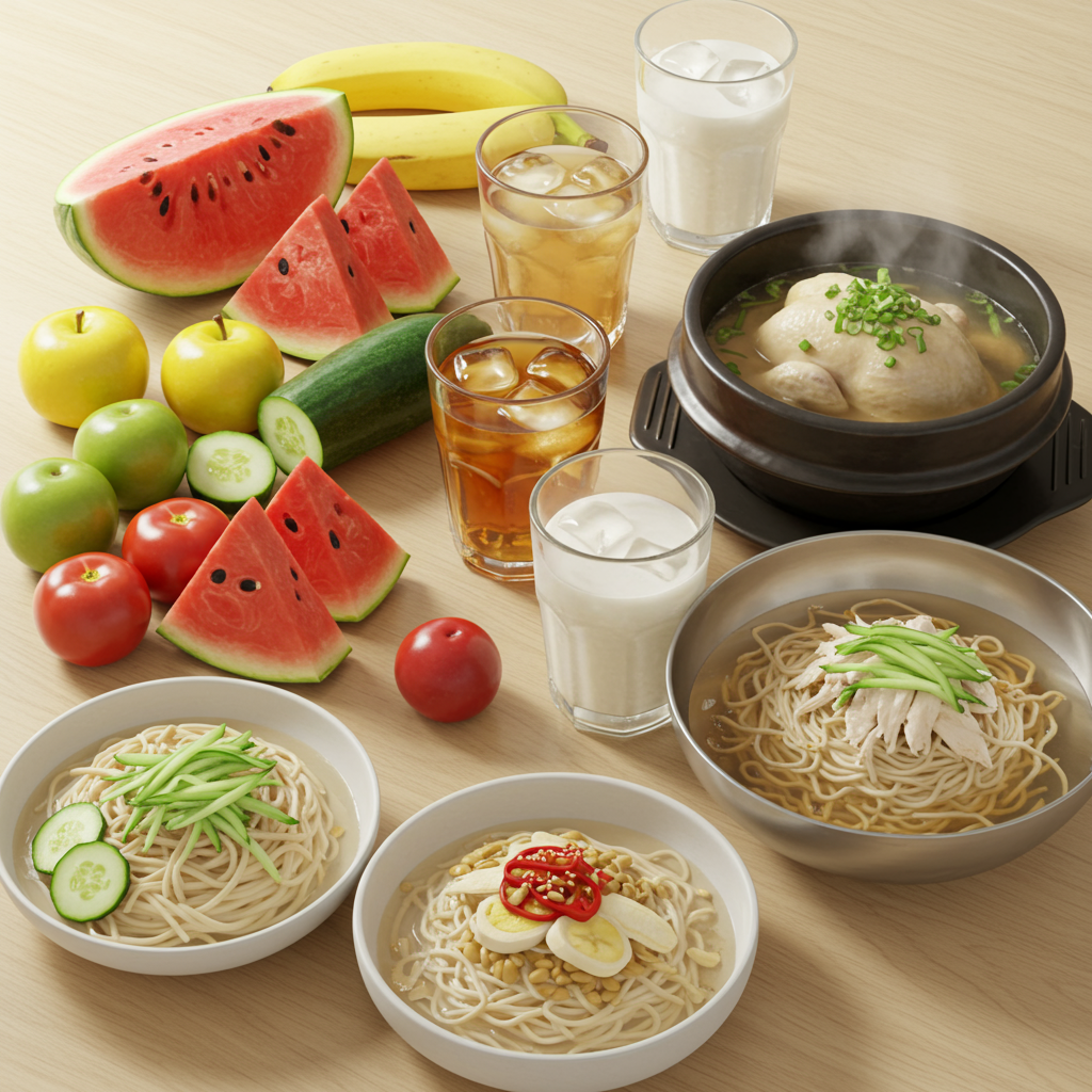 - 콩국수, 초계국수: 시원하면서도 단백질이 풍부한 콩국수나 닭고기가 들어간 초계국수는 입맛을 돋우고 영양을 보충하기 좋아요.