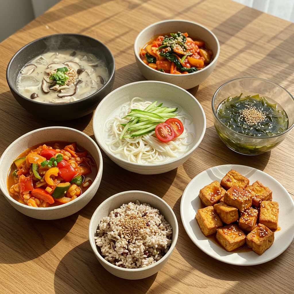 | 비건 콩국수 | 콩, 국수, 오이, 토마토 | 식물성 단백질 보충, 갈증 해소 | 시원하고 고소한 여름 별미 |